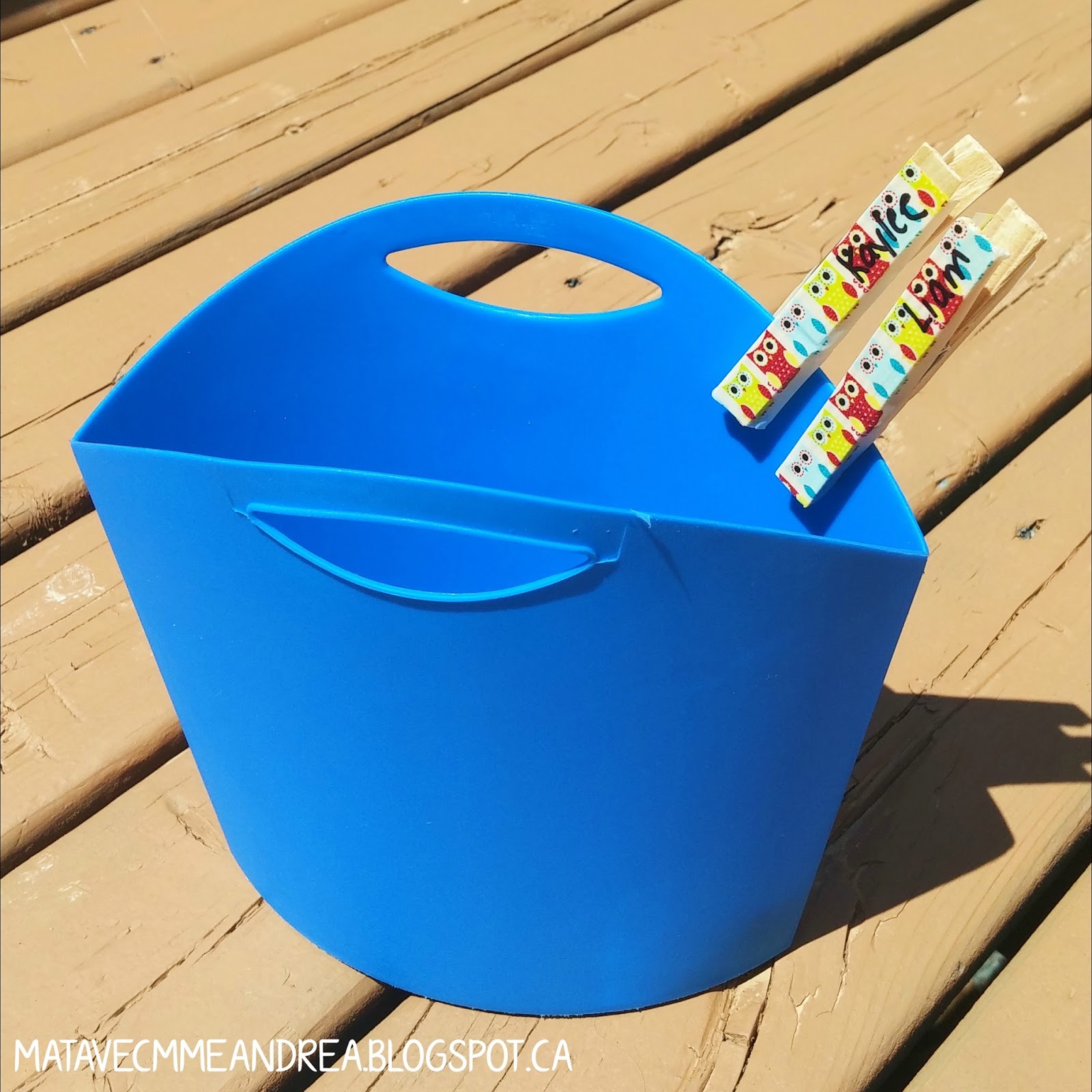 When I first started teaching, I used giant Popsicle sticks for drawing names. Not anymore! You better believe I use washi-taped clothespins. Why? Because after I draw a name, I can CLIP IT TO THE SIDE OF THE BUCKET and not have to make a pile of drawn names that I *always* would end up dropping, or having them slide off my lap, or forgetting them on the table and losing some of them.