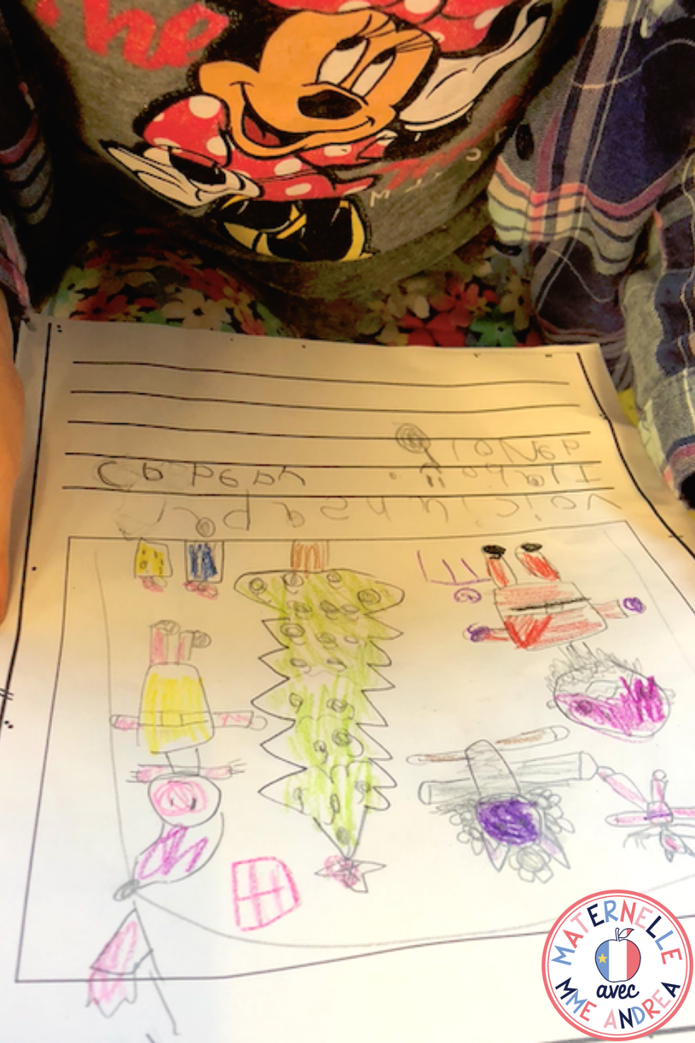 In maternelle and even première année, most of our students’ stories will be told via picture. Many, many children’s book authors do this; we all know how common and well-loved wordless books are! There’s nothing wrong with this, and in fact, I encourage it!